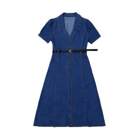 Новое поступление, летнее женское платье с отложным воротником, женское длинное джинсовое платье с поясом